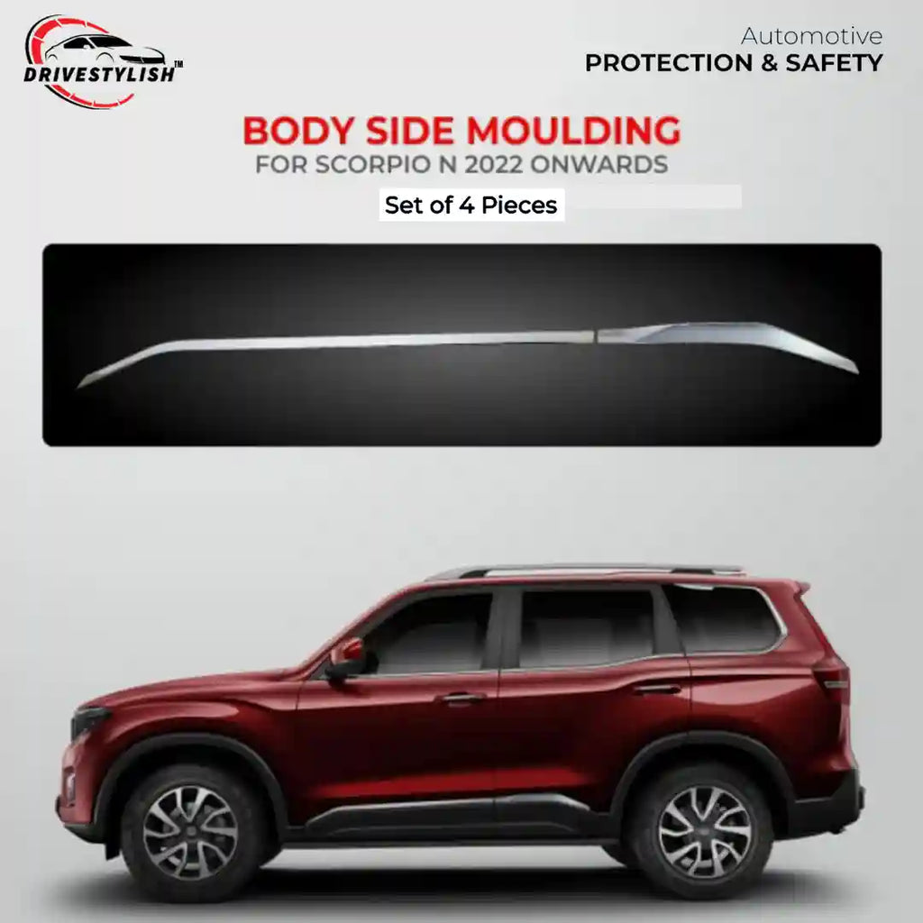 Side beading for the Scorpio N  is an exterior update for transforming functionality and exterior elegance. These accessories protect the car from scratches and dents. Ozone Plus deals with premium quality claddings that will change the entire game of exteriors for your car. The chrome-finished black coloured beadings make your car stand out.